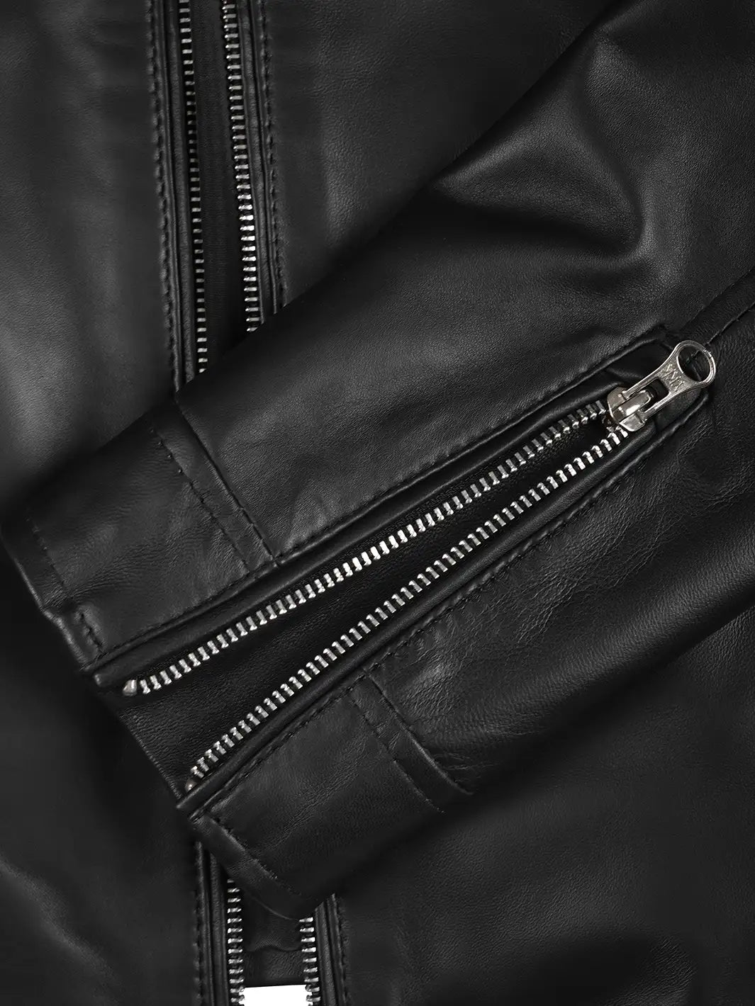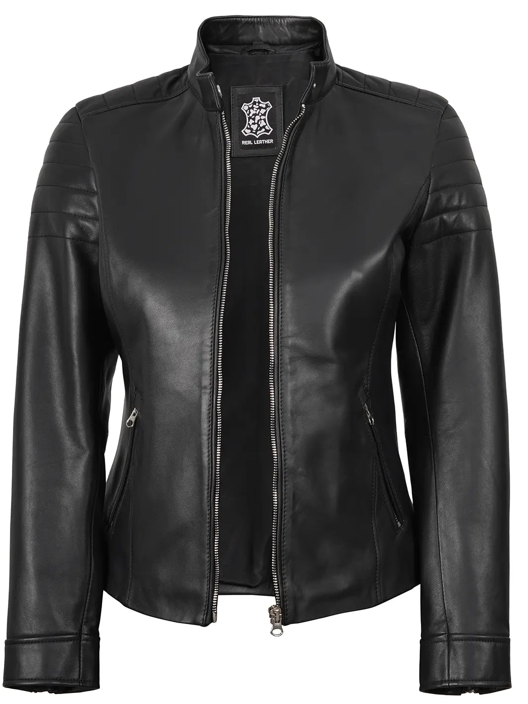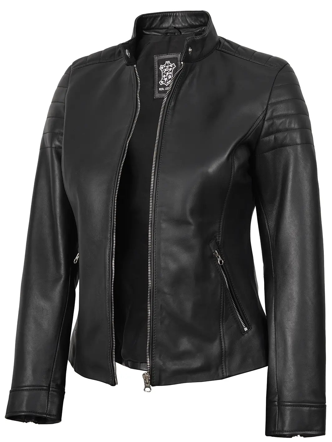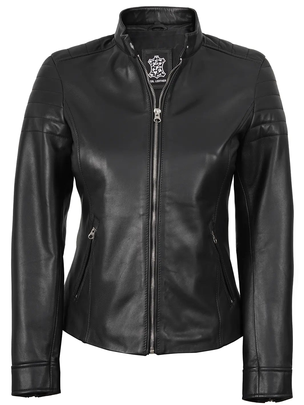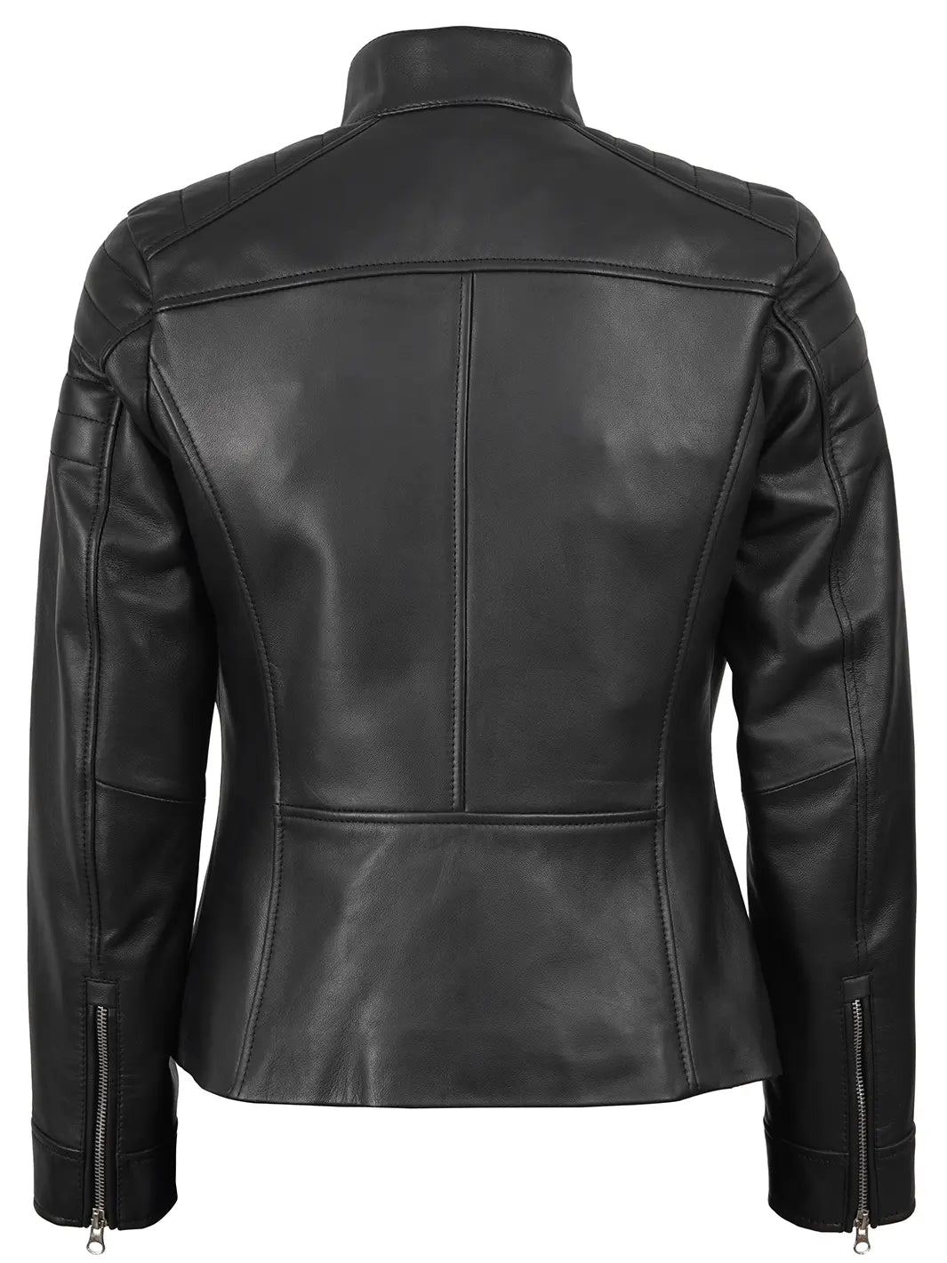 Elevate your look beyond ordinary with the style cafe racer leather jacket for women. It's the ideal outerwear with detailed features that make traveling more practical. Classic zipper design, pockets with side zips, and padded shoulders make it your perfect everyday outerwear!