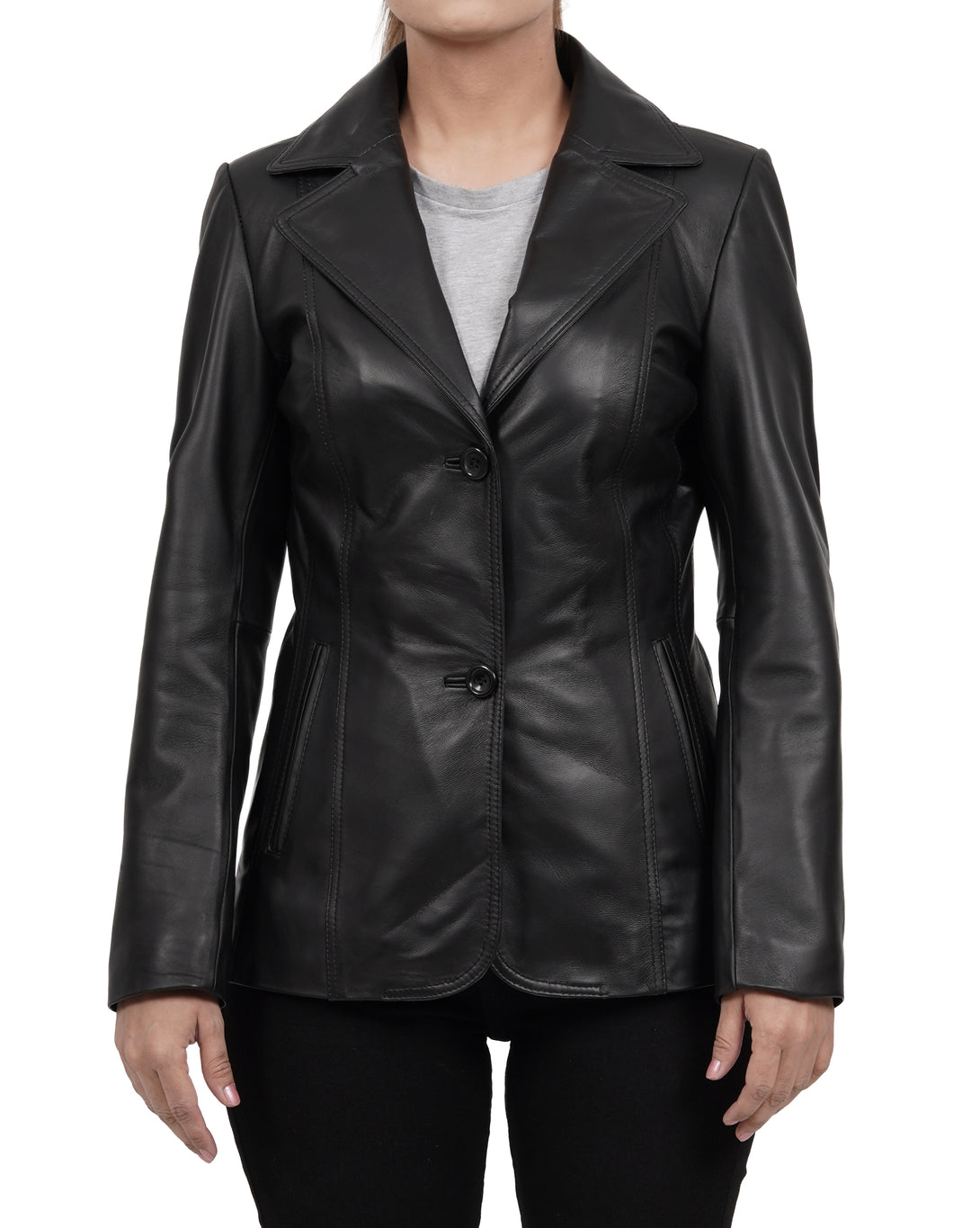 Crafted from real lambskin for a luxurious feel. This semi-formal blazer features a classic two-button closure, broad lapel, and decorative seams, complemented by an open cuff design. It's fully lined with soft polyester and includes two side pockets plus an inside mobile pocket for your essentials.