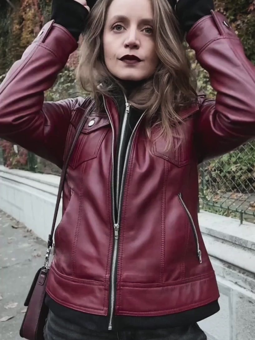 Make a bold statement with the Tralee women's burgundy leather jacket, crafted from 100% real lambskin leather in a stunning burgundy color. The removable hood and bomber styling give you versatile looks for any occasion.
