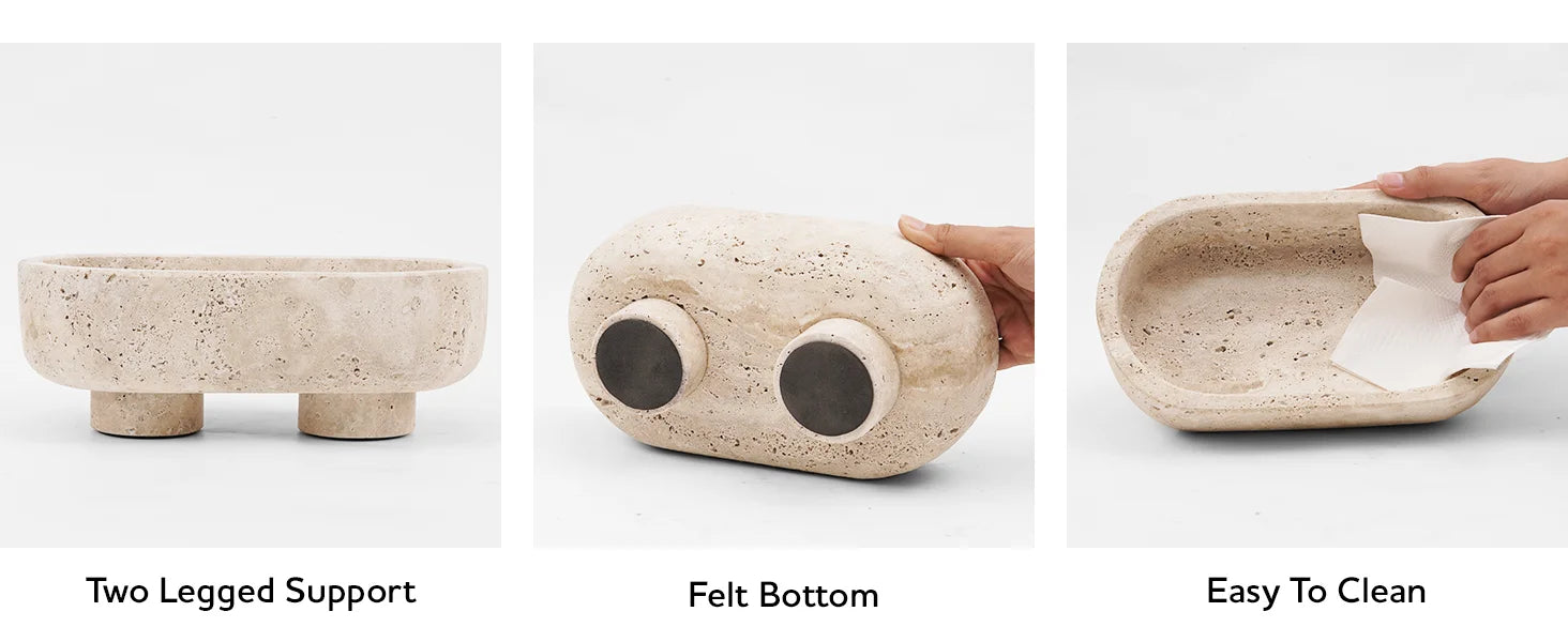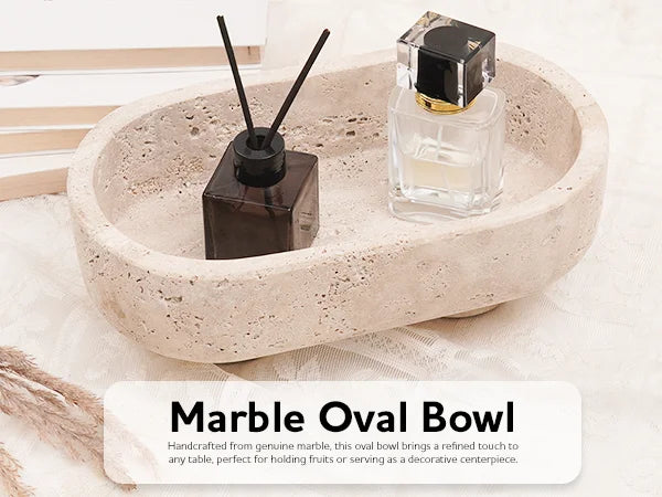 Bring timeless elegance to your space with the Travertine Marble Oval Bowl with Stand, handcrafted from high-quality natural stone. Its elevated oval design adds visual depth while highlighting the organic beauty of travertine textures. Perfect for displaying candles, fruits, or candies, this bowl blends decorative appeal with everyday functionality. A refined centerpiece for dining tables, kitchen counters, and living spaces.