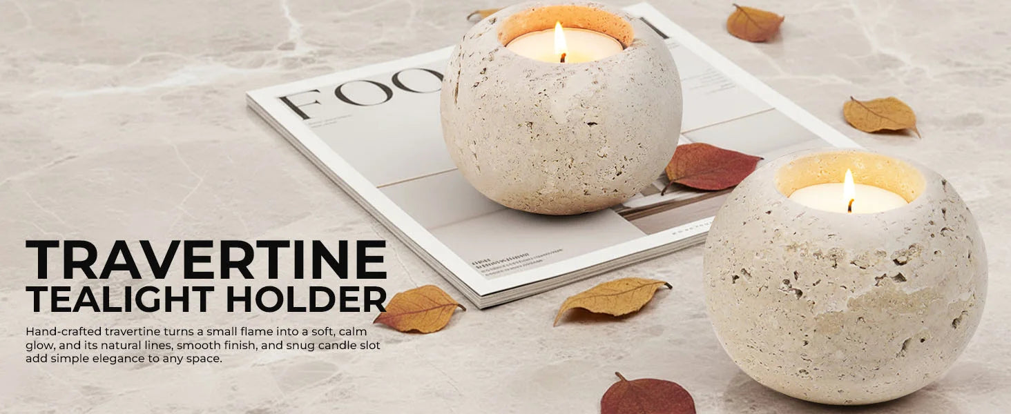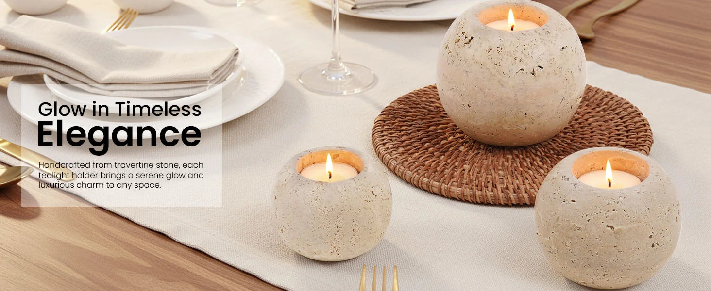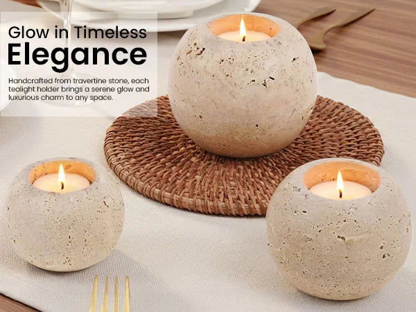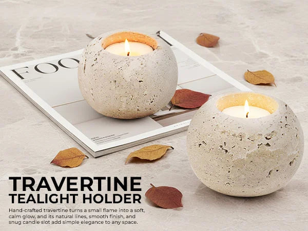 Add timeless elegance to your home with the Travertine Marble Tealight Candle Holder Set. Hand-carved from natural marble, each piece showcases unique stone textures for a refined, luxurious look. Designed to create a warm and cozy glow, these votive holders complement farmhouse, rustic, and modern décor styles. Perfect for living rooms, dining tables, weddings, and seasonal décor. Durable, stable, and beautifully crafted to last for years.