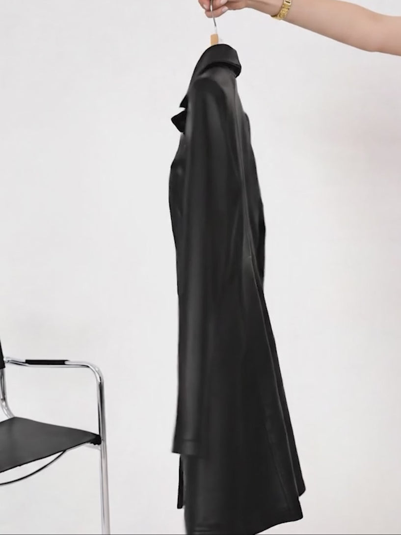 Refined and endlessly wearable, the Women’s Black Leather Car Coat is crafted from 100% real lambskin leather for a smooth, luxurious feel. The 3/4 length silhouette, shirt-style collar, and clean four-button front deliver classic elegance that flatters every outfit. Soft polyester lining ensures comfortable warmth through fall and winter without added bulk. Polished, confident, and versatile — this is a coat you’ll reach for season after season.