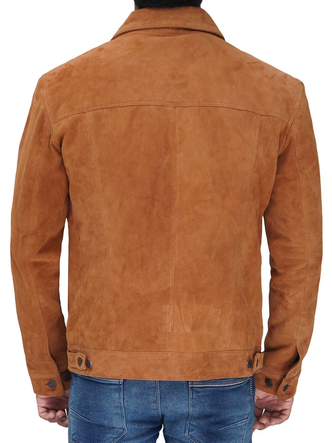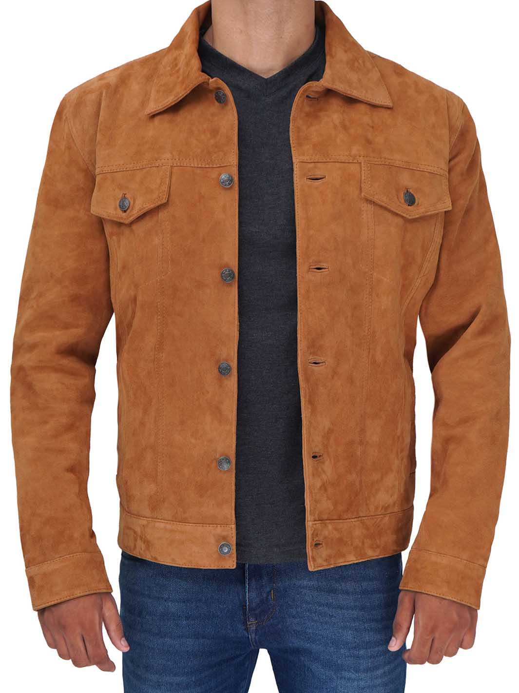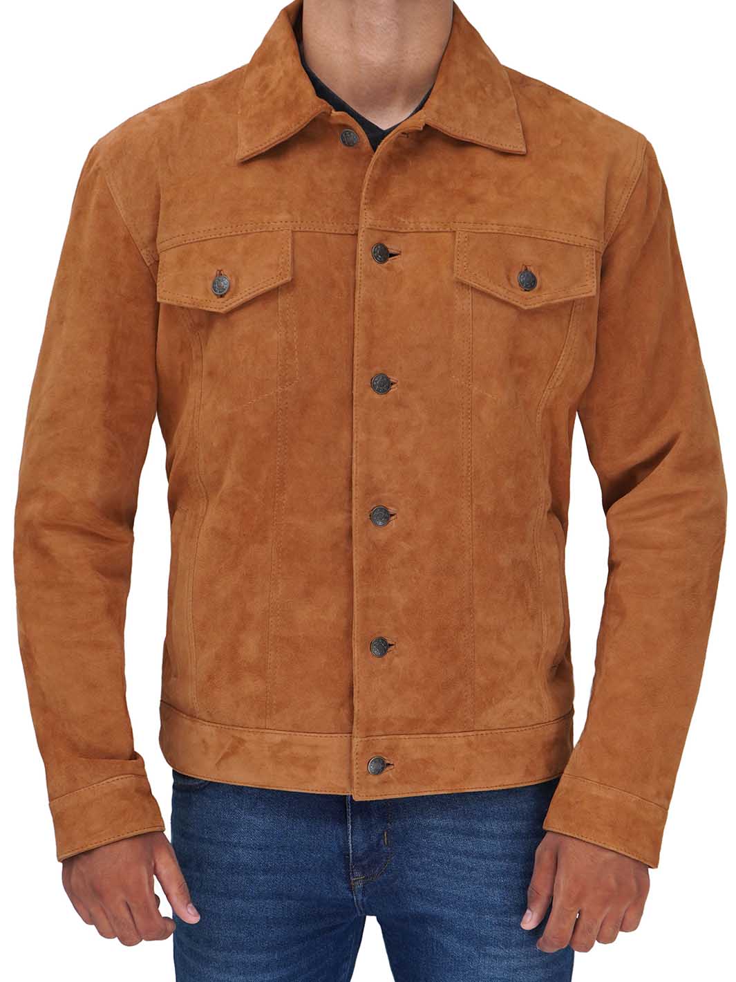 Logan Light Brown Real Trucker Suede Jacket Mens
