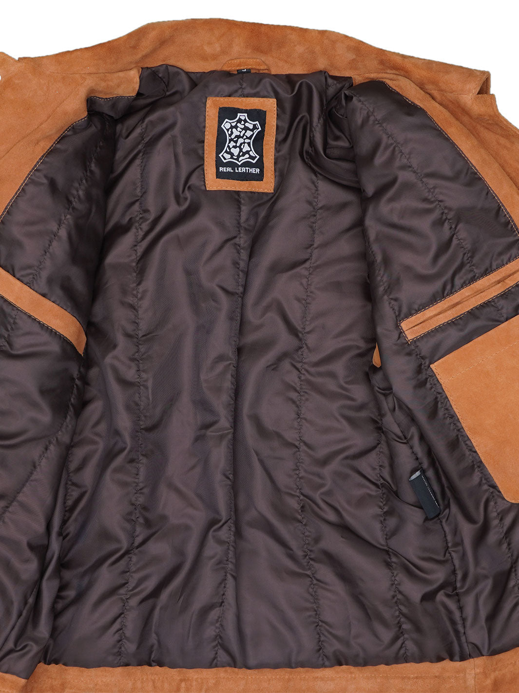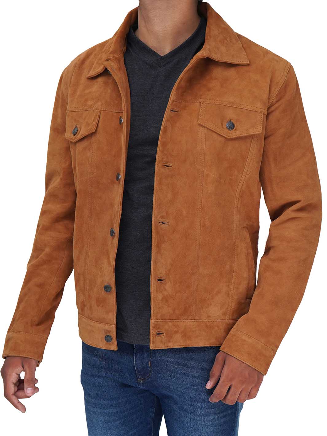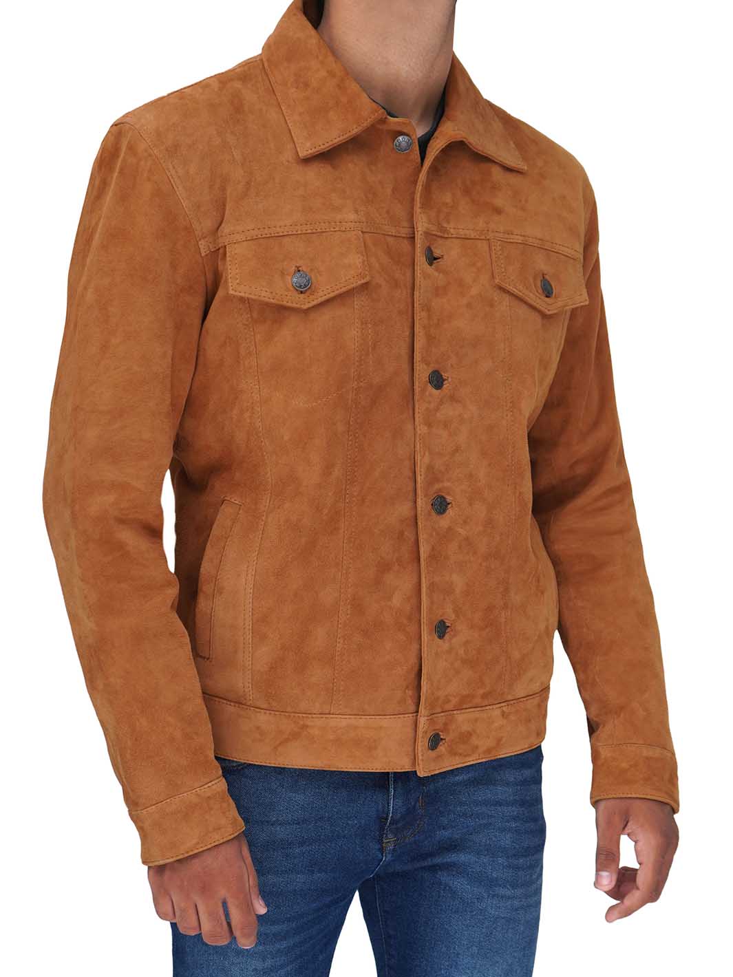Logan Light Brown Real Trucker Suede Jacket Mens