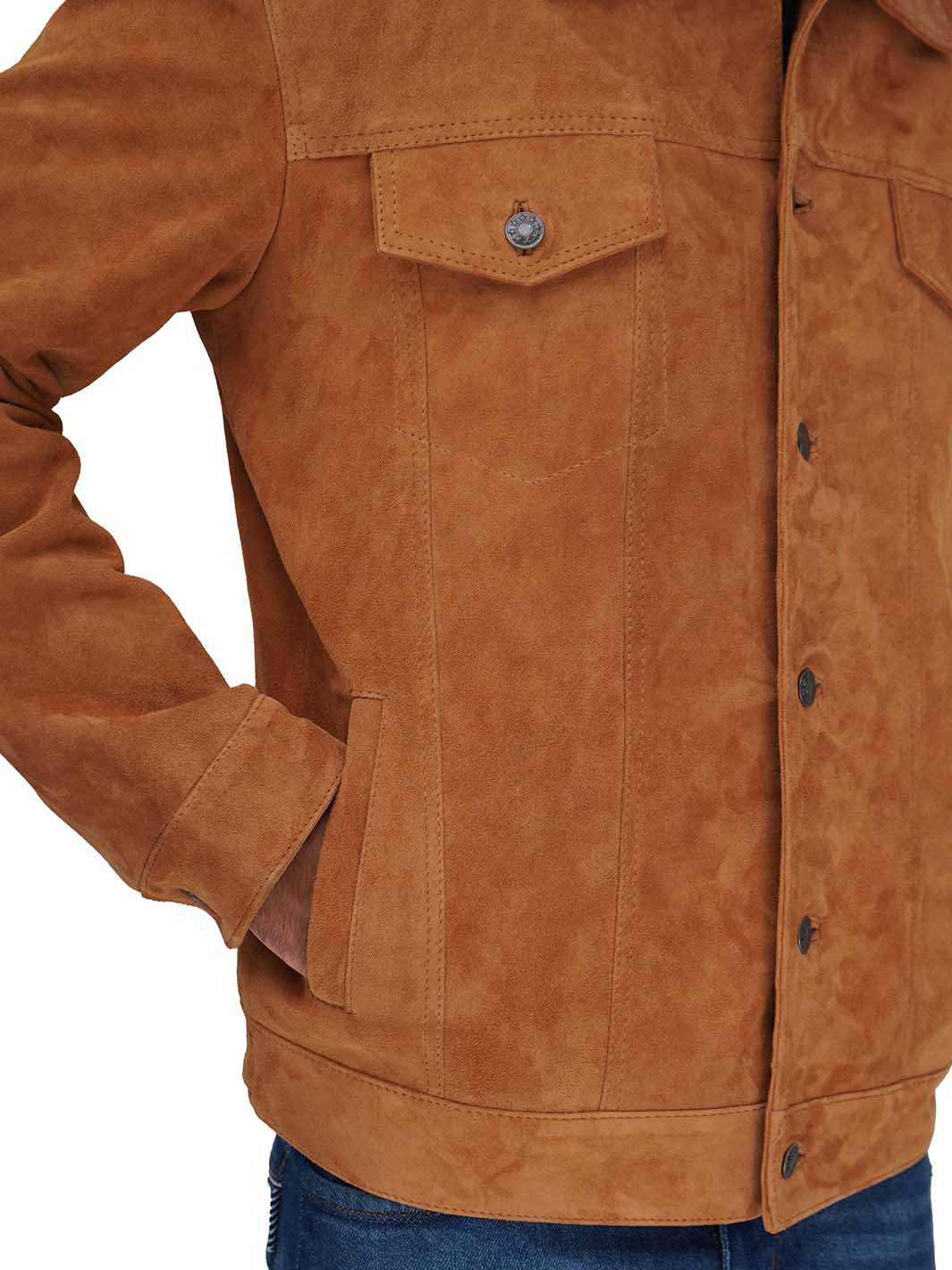 Experience a touch of timeless charm with the Logan Tan Trucker Suede Jacket. Carefully crafted with attention to detail, this jacket boasts a classic trucker design that exudes vintage-inspired cool. Embrace fearless fashion and make a statement wherever you go in the Logan Tan Suede Trucker Jacket.