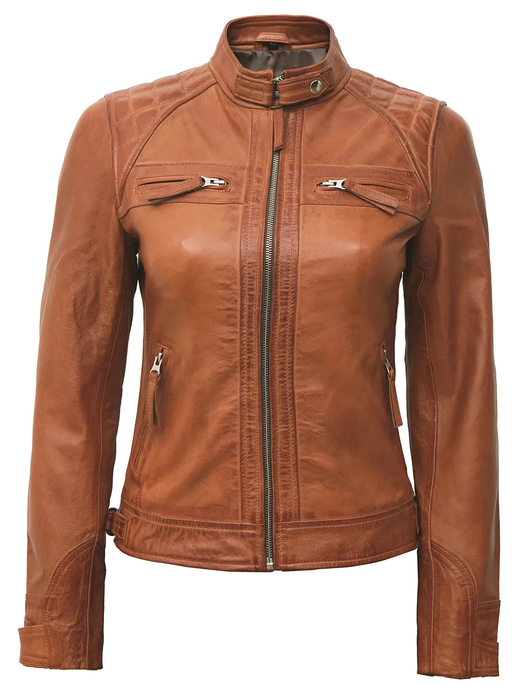 Women's Cafe Racer Style Tan Brown Leather Jacket