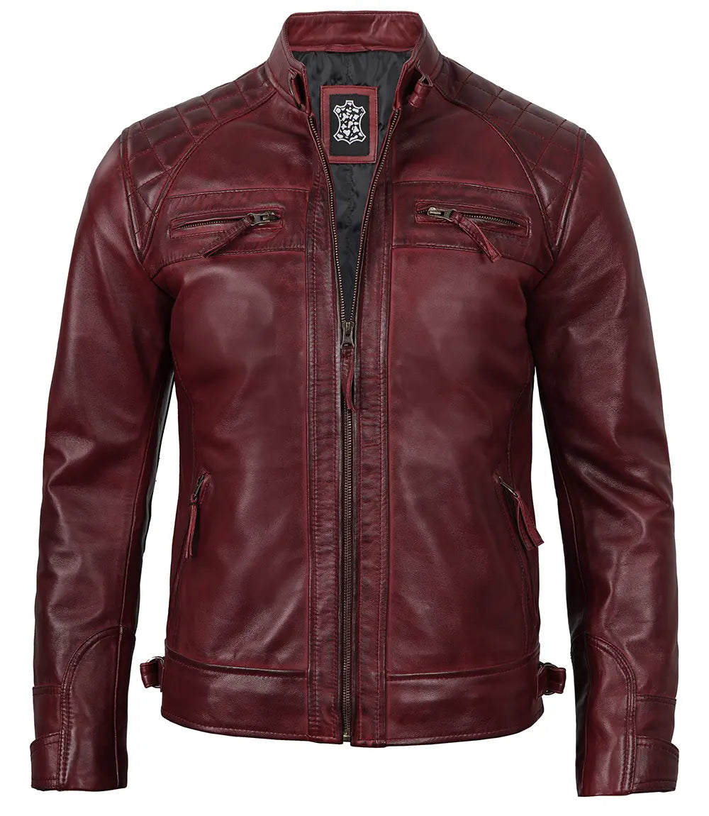 Johnson Burgundy Quilted Biker Style Leather Jacket