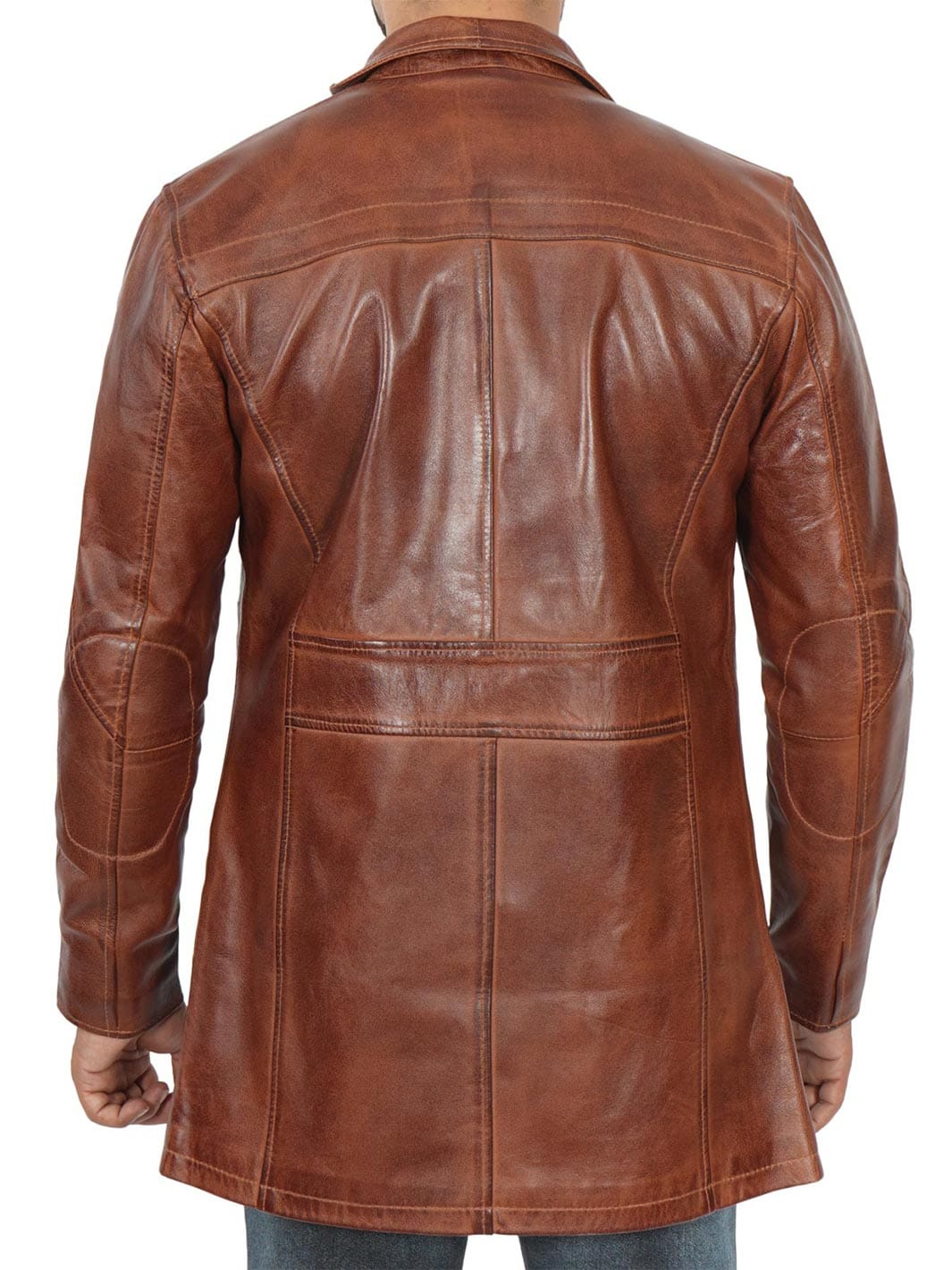 Bristol Men's Vintage Cognac Brown Leather Car Coat