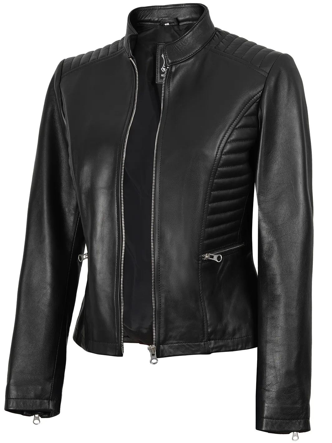 Unleash your bold and chic style with the Rachel women's black leather jacket. Made with 100% real lambskin leather, this meticulously crafted jacket embodies rebellion and urban fashion, making a statement for any woman.