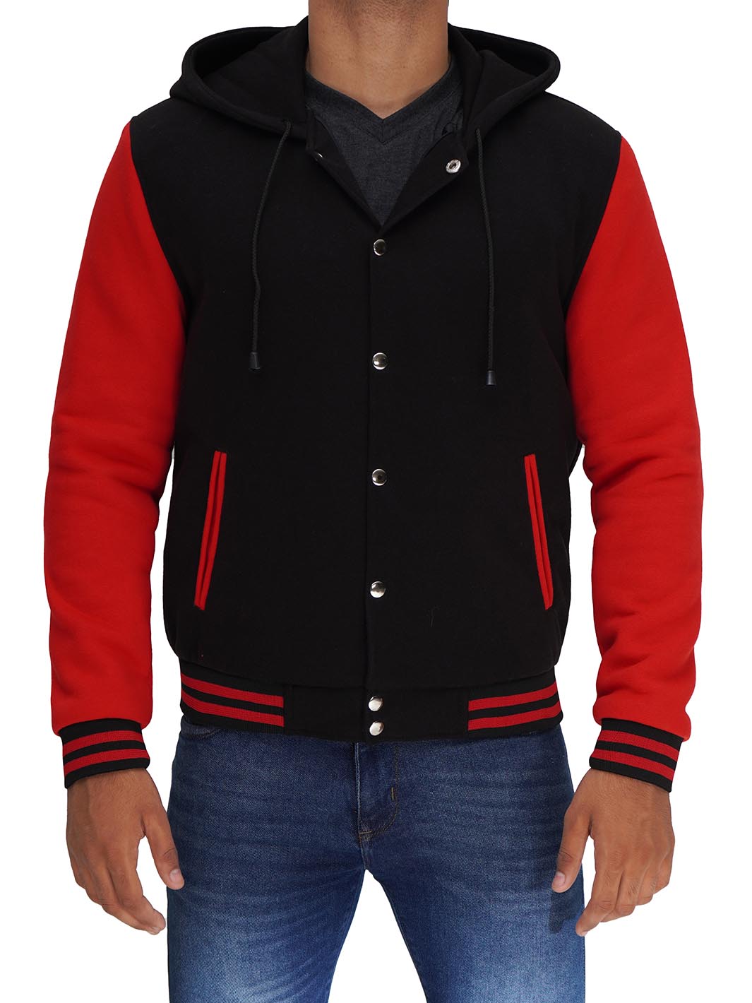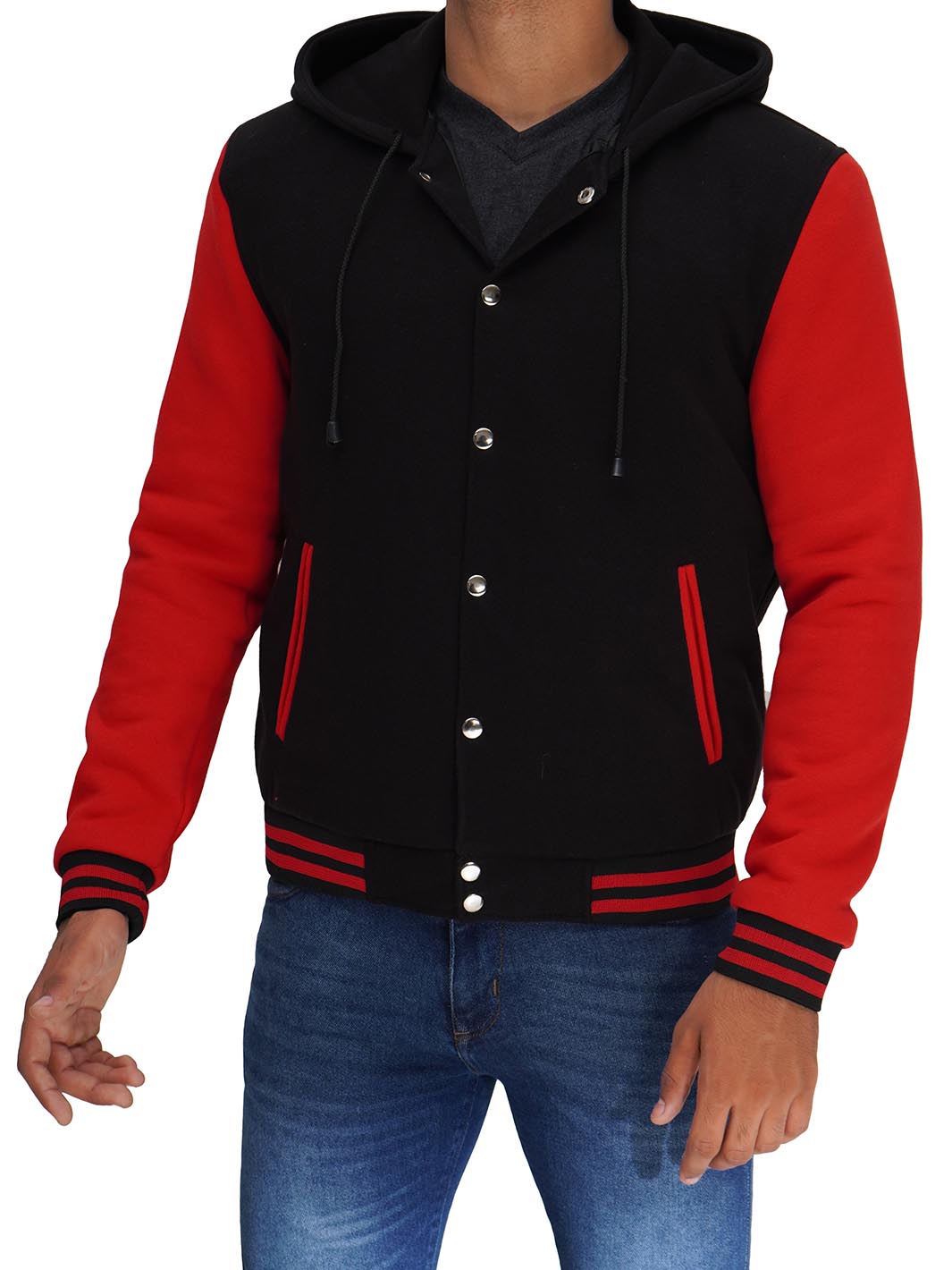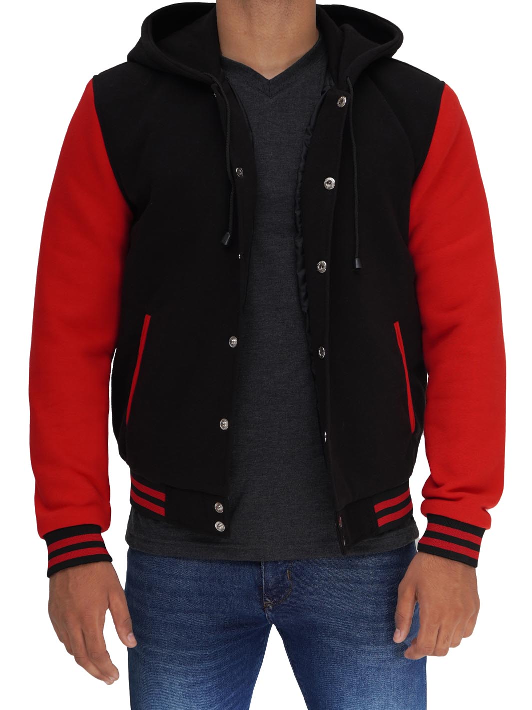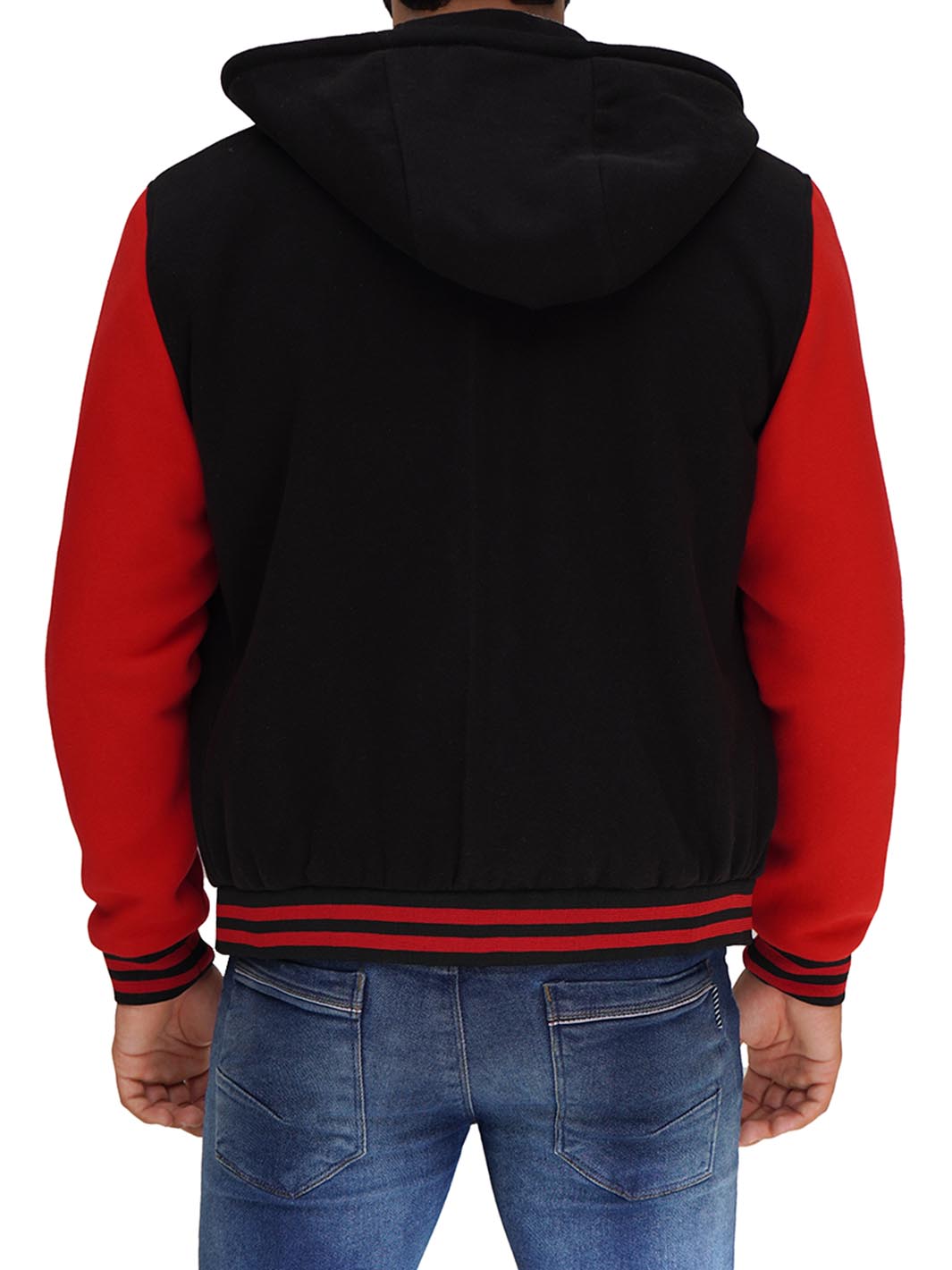 Men's Red and Black Varsity Letterman Jacket With Hood