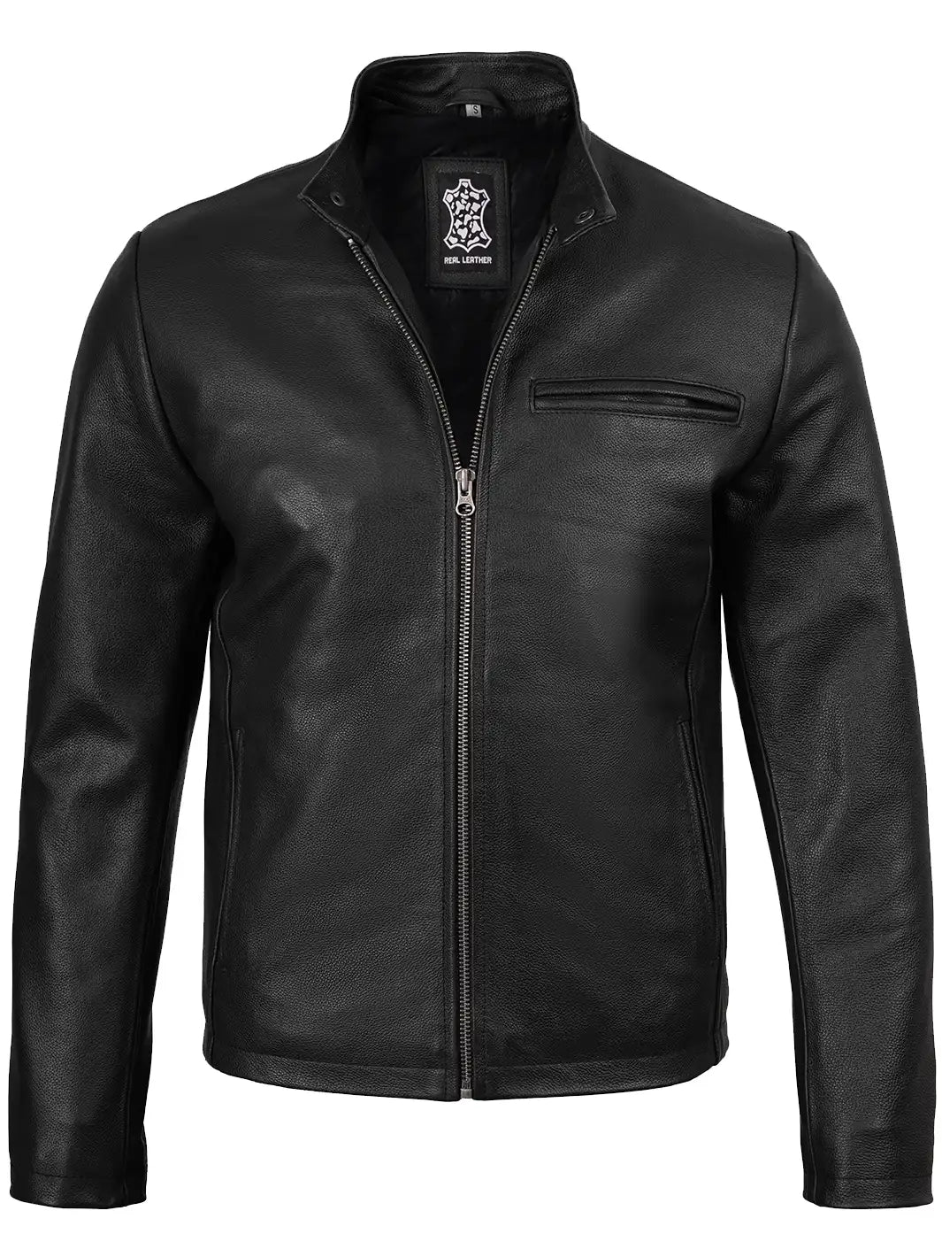 Men’s Black Cowhide Leather Cafe Racer Jacket