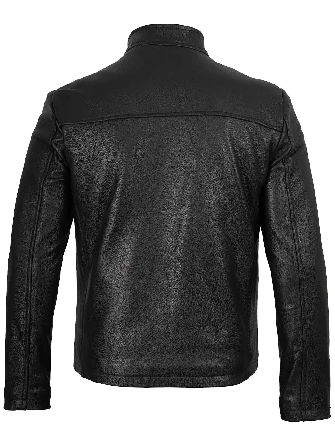 Men's Black Cowhide Leather Cafe Racer Jacket