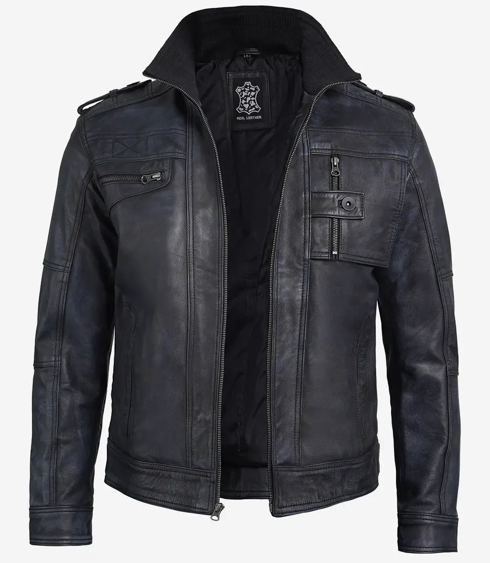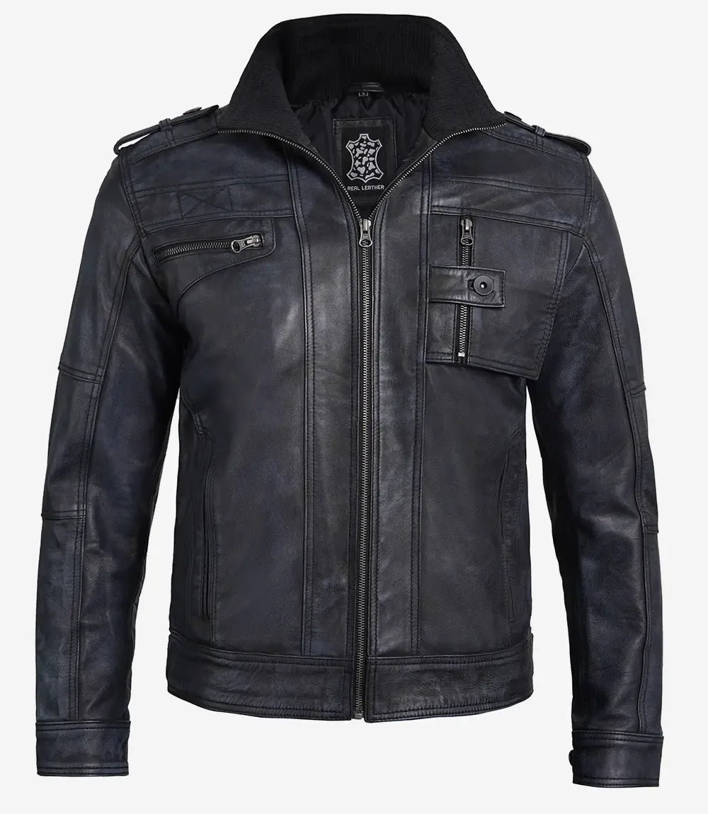 Tavares Mens Distressed Black Leather Biker Style Jacket